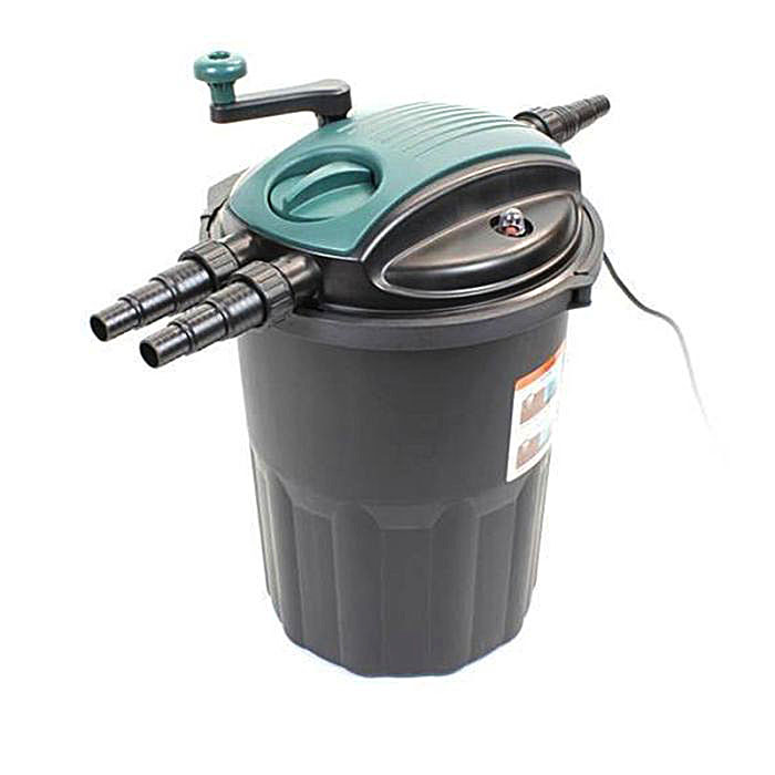 The Osaga ODF 15000 is a pressure filter equipped with an integrated 24-watt UVC clarifier, making it well-suited for ponds of up to 15,000 liters.